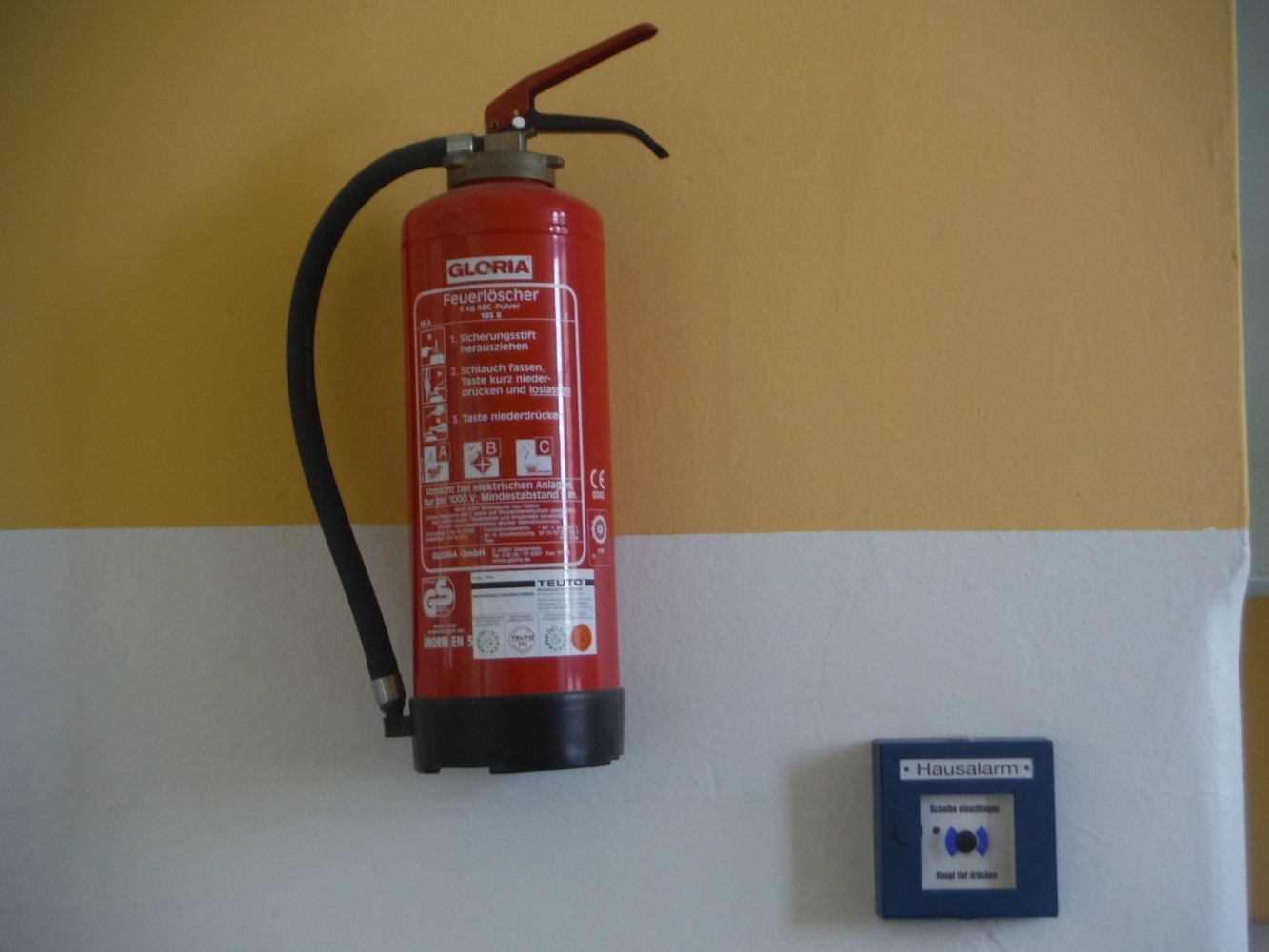 In jeder Schule sind mehrere Feuerlöscher zu finden.