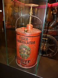 Foto links: Feuerlöscher aus dem Jahr 1885 (Wikipedia)